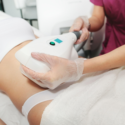 Non-invasive body shaping treatment used to reduce cellulite as well as slim the area around the stomach, hips and thighs. The machine combines three different technologies: Infrared LED light, Bi-Polar Radio Frequency and Cavitation. The technologies are used to improve skin texture and reduce overall volume of treated area.